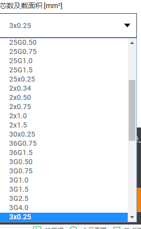 芯數(shù)及截面積 [mm2] | 3x0.25 |